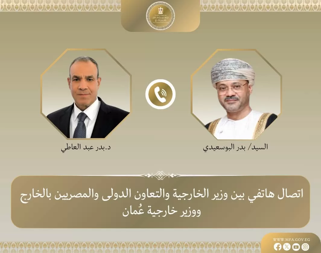 Un entretien téléphonique a eu lieu entre le ministre des Affaires étrangères et de la Coopération internationale et des Égyptiens à l’étranger,Badr Abdel-Aati et le ministre des Affaires étrangères du Sultanat d’Oman, Badr Al-Busaidi.