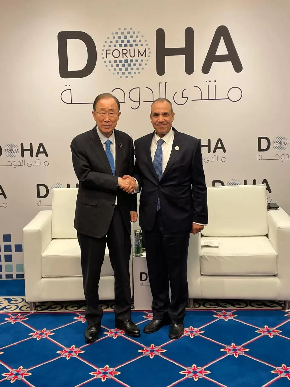 Le Dr Badr Abdel Aati, ministre des Affaires étrangères, de l’Immigration et des Affaires des Égyptiens à l’étranger, a rencontré samedi 6 décembre M. Ban Ki-moon, ancien secrétaire général des Nations unies, en marge de sa participation au Forum de Doha.