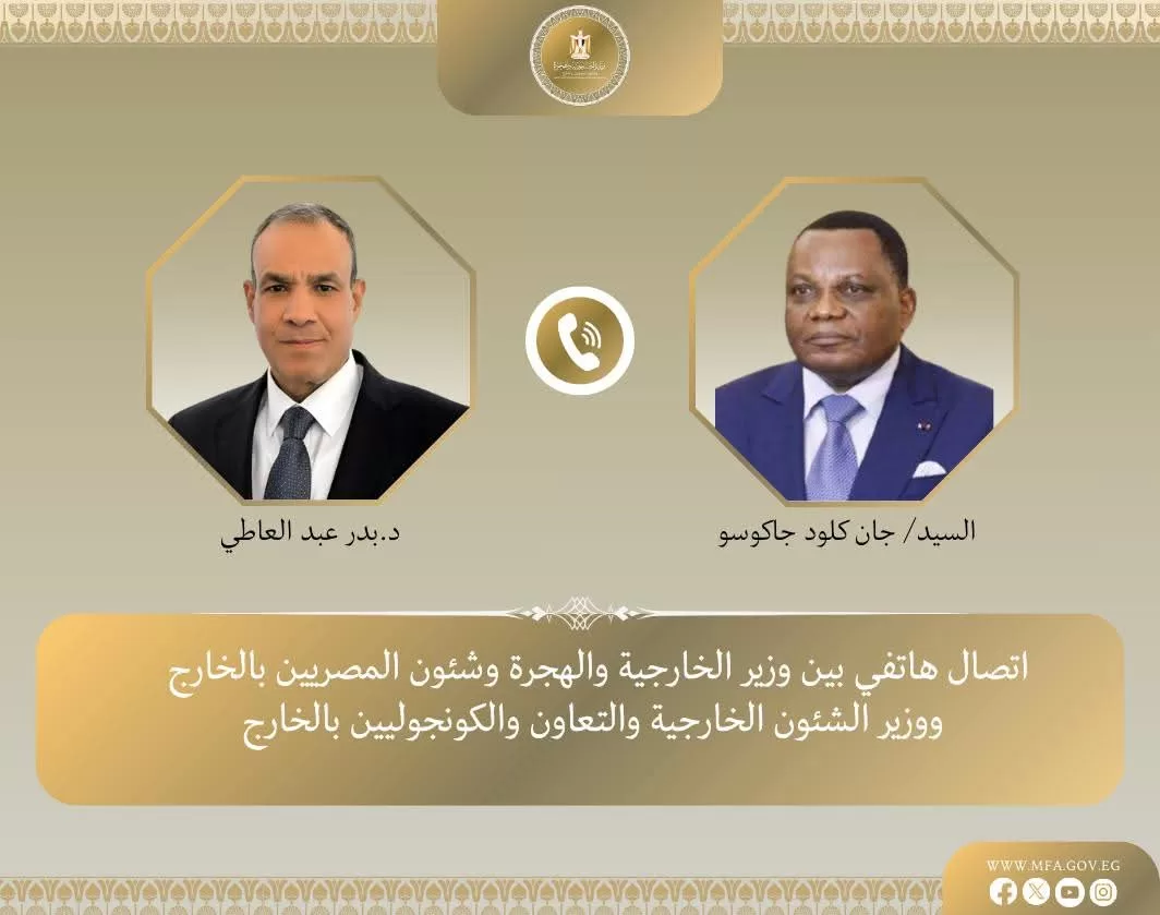 Dr. Badr Abdel Aati, Ministre des Affaires étrangères a eu un entretien téléphonique avec M. Jean-Claude Gakosso, Ministre des Affaires étrangères et de la Coopération de la République du Congo. Cette discussion s’inscrit dans le cadre des efforts continus visant à renforcer la coopération bilatérale entre l’Égypte et la République du Congo-Brazzaville.