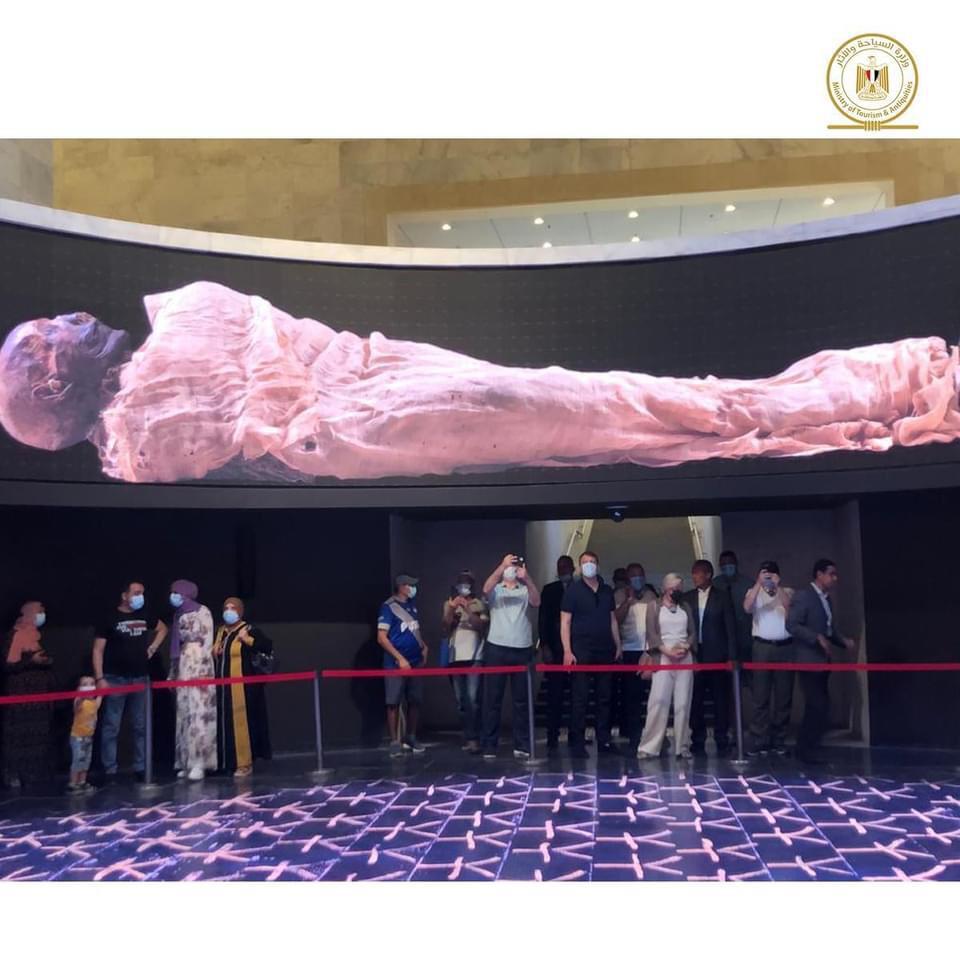 Une délégation du g o u v e r n e m e n t s e r b e , actuellement en Égypte, a visité les pyramides de Guiza et le Musée national de la civilisation égyptienne à Fustat. La délégation a commencé sa visite par le Musée national de la civilisation égyptienne. La délégation a exprimé sa grande admiration pour ce qui a été accompli dans le Musée et les antiquités uniques qu‘il contient, en plus de son style d‘affichage distingué, en particulier la salle des momies. Dans la zone des pyramides de Guiza, la délégation a été reçu par le directeur général de la région, Achraf Mohi El-Dine qui les a accompagnés dans une tournée à l‘intérieur de la zone.