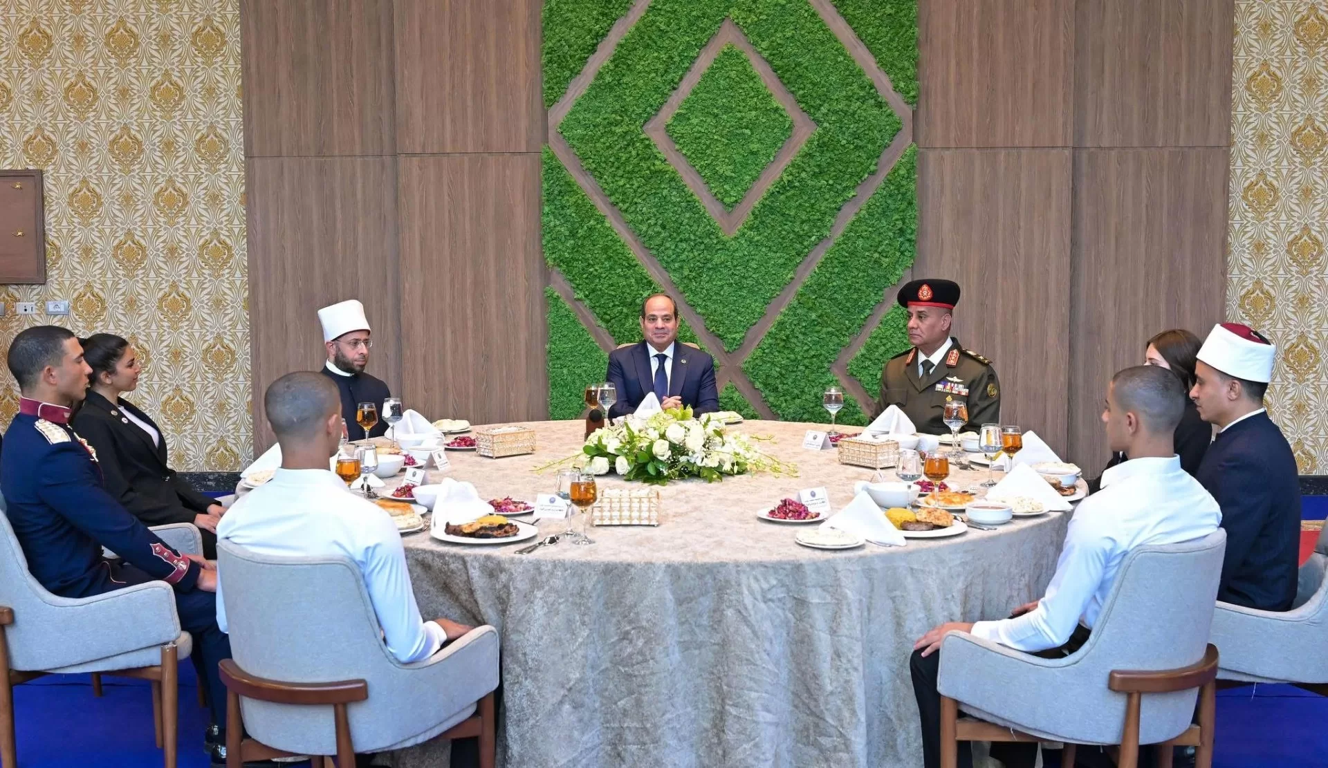 Le président a déjeuné avec le directeur de l’Académie, les directeurs des écoles militaires, le ministre des Wakfs et les étudiants.