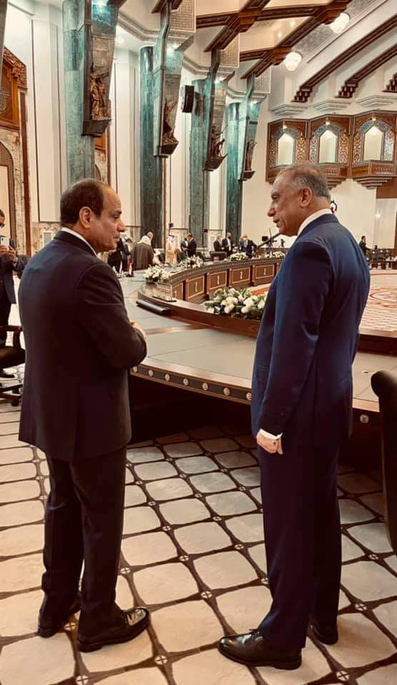 Lors de l’ entretien, Al-Sissi a affirmé le soutien total de l’Egypte au peuple irakien sur toutes les échelles pour qu’il relève les défis actuels: le terrorisme, le rétablissement de la sécurité et de la stabilité en Irak.Soutien dans le cadre de la coopération tripartite avec l’Egypte et la Jordanie ou de la coopération bilatérale à travers la mise en place d’un partenariat stratégique.