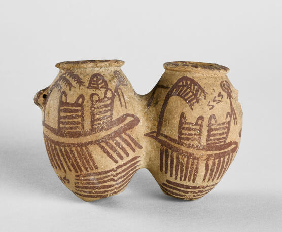 Découvertes dans des tombes, les poteries présentées sont pour la plupart entières et dans un excellent état de conservation. Pourtant, les plus anciennes ont près de 6 000 ans d’âge ! Il s’agit de vases rouges à bord noir, produits à partir de l’argile limoneuse du Nil. Des expériences ont déterminé qu’ils étaient cuits dans des fosses-fours, plantés tête en bas dans un combustible compact sans doute fait de charbon de bois et de fumier, une cuisson qui teignait en noir le col de ces poteries.