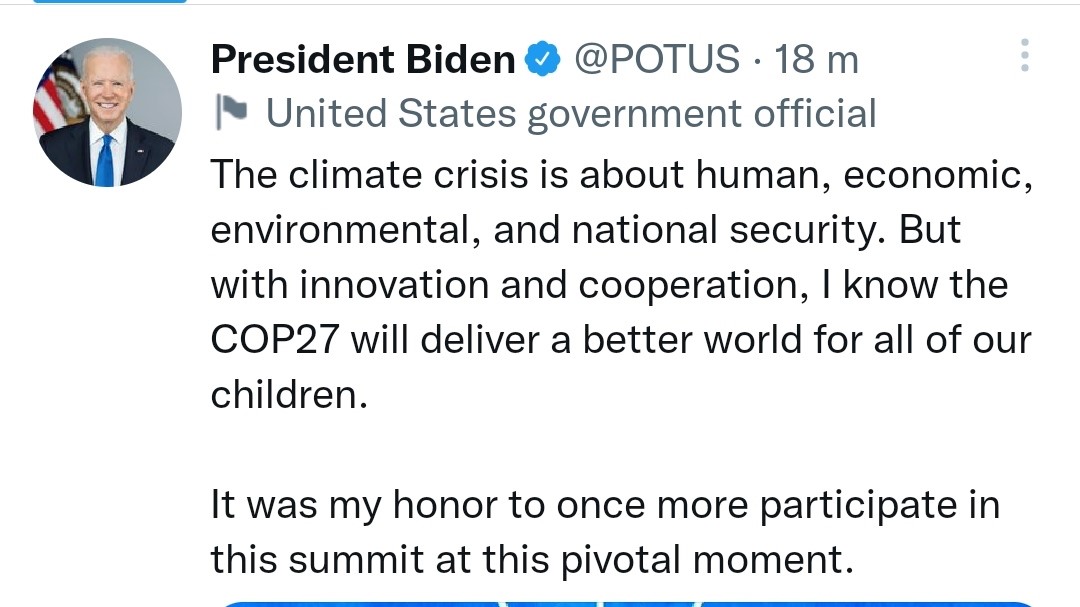 Biden sur Twitter : La COP-27 va permettre un meilleur monde à nos enfants 3 - Le Progrès Egyptien