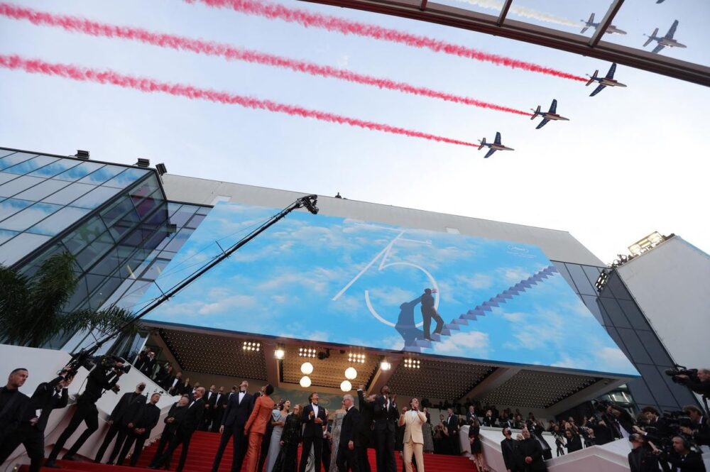 Une séquence qui restera dans les mémoires. En particulier celles des membres de l’équipe de Top Gun : Maverick, qui n’auraient sans doute pas pu rêver meilleur accueil. Il suffit de voir leurs têtes ébahies sur les photos prises par l’AFP pour saisir le caractère exceptionnel de l’instant. Les yeux étaient ouverts aussi grand que les bouches, signe de la stupéfaction de voir la Patrouille de France survoler le tapis rouge du Festival de Cannes. Seul Tom Cruise a semblé bien calme, serrant le poing et regardant le ciel comme un môme.