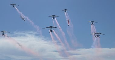 Le groupe britannique « Red Arrows » est arrivé dans une des bases aériennes au sud de l’Egypte pour prendre part à cet événement.