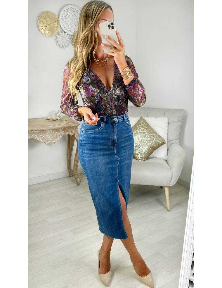 Profitez de belles journées qui s’annoncent pour porter des tenues plus légères. Avec cette jupe longue et son design original, cette jupe longue en jean va attirer tous les regards. Sa coupe au tombé impeccable est fendue sur le devant. En plus de vous faciliter la marche, cela vous donne un style unique. Son allure allonge vos jambes et vous donne une silhouette féminine. Idéale pour le printemps, vous la portez facilement au quotidien. Fabriquée dans une toile en coton, cette pièce est souple et confortable. Sa coupe convient à toutes les morphologies.