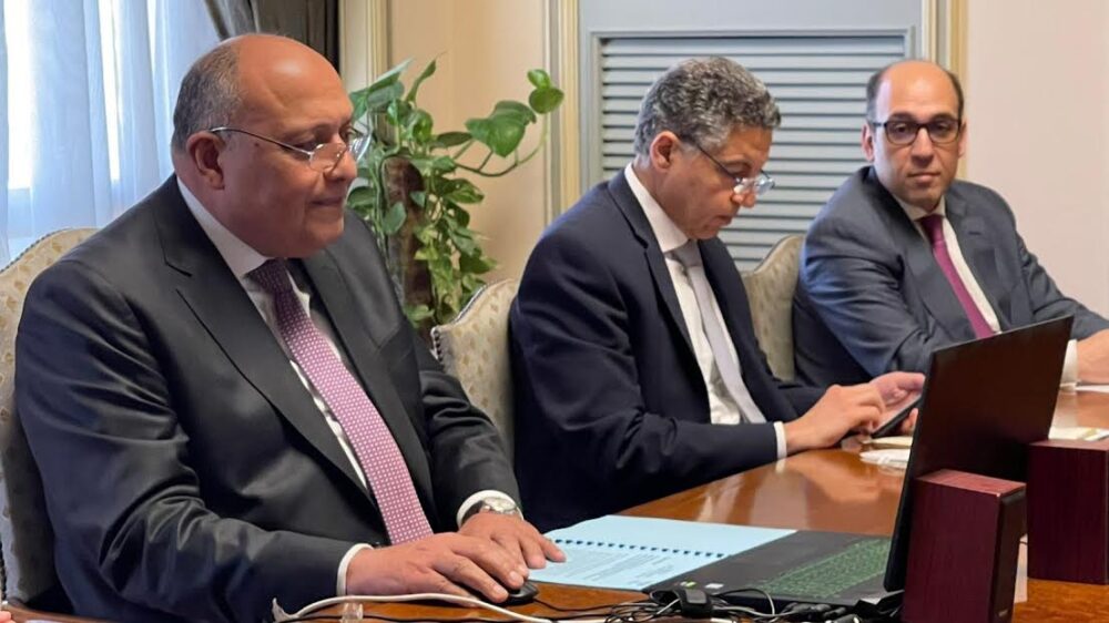 Le ministre des Affaires étrangères Sameh Choucri a participé à la 27e Conférence des parties à la Convention-cadre des Nations Unies sur les changements climatiques organisée virtuellement par le magazine américain “Foreign Policy”, rapporte la MENA. Choucri a exposé la vision de la présidence égyptienne pour consolider l’action climatique notamment en ce qui concerne le passage du stade des engagements à celui de l’application effective et du déblocage des financements nécessaires, indique le porteparole de la diplomatie égyptienne, l’ambassadeur Ahmed Hafez. Choucri a notamment mis en exergue les efforts connexes entrepris par l’Egypte dans le cadre de sa stratégie nationale pour le changement climatique à l’horizon 2050. Par ailleurs, le ministre des Affaires étrangères s’est entretenu au téléphone avec son homologue canadienne Mélanie Joly autour des moyens de booster les relations de coopération entre l’Egypte et le Canada dans divers domaines, plus les dossiers d’intérêt commun sur les scènes régionale et internationale.