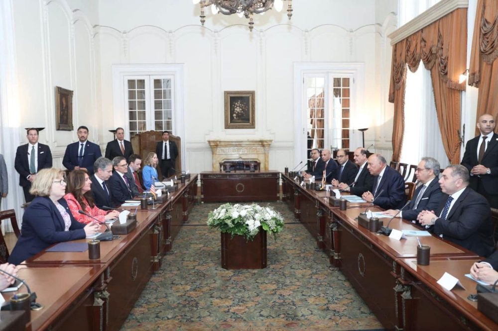 Le ministre des Affaires étrangères, Sameh Choucri, et le secrétaire d’Etat américain, Antony Blinken, ont tenu aujourd’hui jeudi, des pourparlers élargis, en présence des délégations des deux pays, dans le Palais Al-Tahrir.