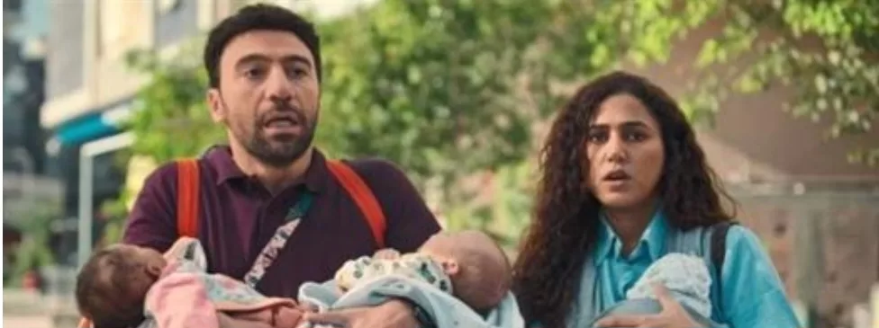 « Karsa Tabeya » (Catastrophe naturelle), mêle drame social et comédie légère, ce qui la rend immédiatement accessible à de nombreuses familles égyptiennes. La série suit Mohamed Shabaan, un jeune homme modeste issu de la classe ouvrière, marié à Sherouk. Leur vie semble paisible jusqu’à ce que cette dernière annonce sa grossesse. Le hic : elle n’attend pas un, mais sept bébés d’un coup.