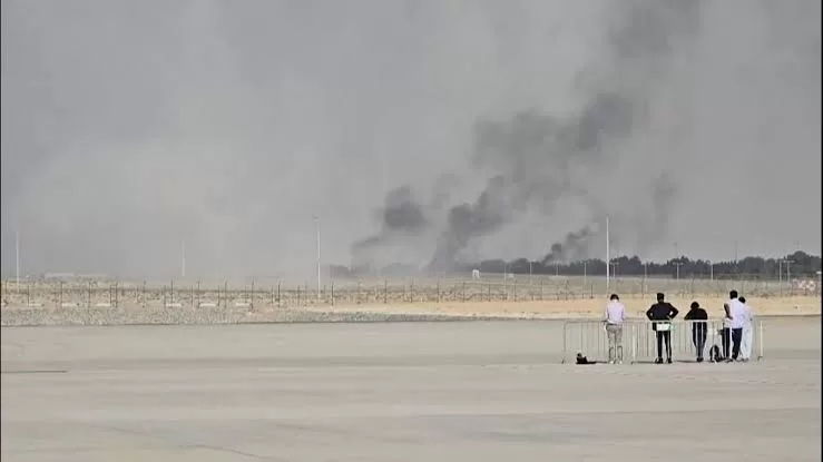 Une épaisse fumée noire s’est élevée au-dessus de l’aéroport Al Maktoum, situé au Dubai World Central, sous les yeux du public, parmi lequel se trouvaient des femmes et des enfants. Des sirènes d’alarme ont retenti juste après l’impact.