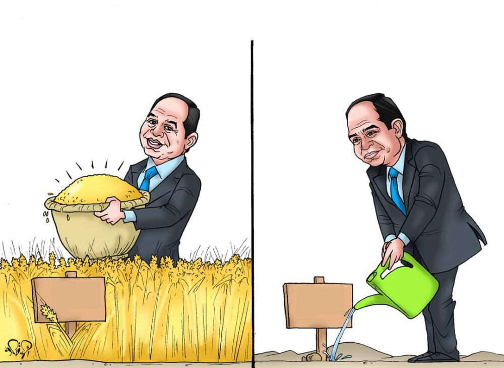 Le jeune caricaturiste Ahmed Kaoud a mis l’accent sur les récentes évolutions survenues à Touchka. En effet, la moisson du blé est importante pour l’Egypte. Cultiver a comme fruit naturel de récolter. Récolter le blé est une source de joie et de bonheur pour la majorité des Egyptiens. L’Egypte œuvre pour réaliser les intérêts des Egyptiens et pour subvenir à leurs besoins.