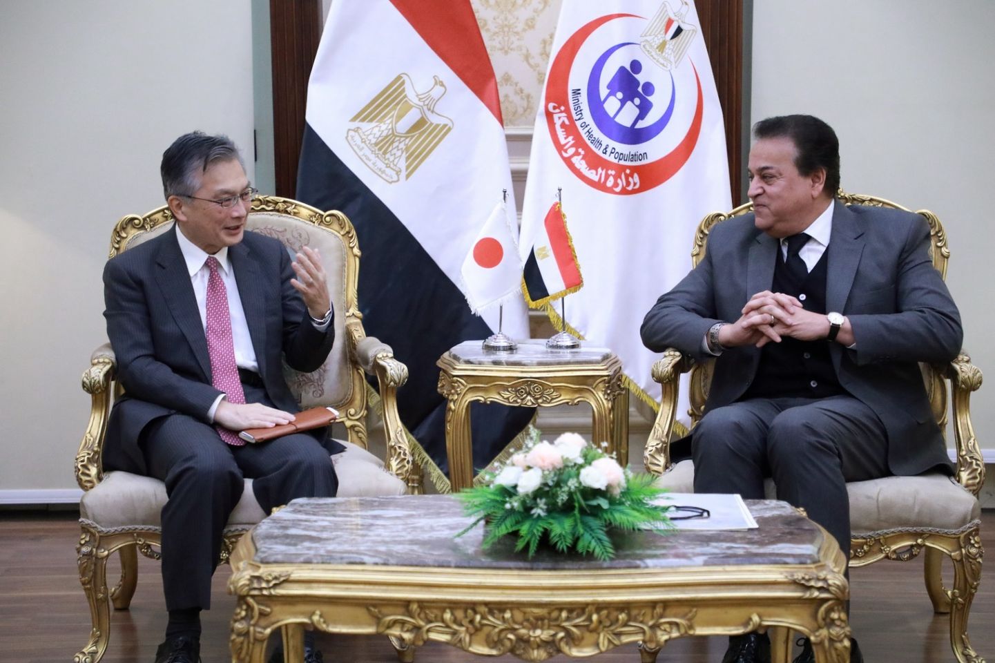 Le ministre de la Santé et de la Population, Dr Khaled Abdel Ghaffar, a discuté avec l’ambassadeur du Japon au Caire, S.E. Oka Hiroshi, et la délégation de l’Agence japonaise de coopération internationale (JICA) des moyens de consolider leur coopération dans le secteur sanitaire. Selon un communiqué publié par le porte-parole du ministère de la Santé, et rapporté par l’agence de presse du MoyenOrient (MENA), la réunion a porté sur la coopération égypto-japonaise dans nombre de projets sanitaires, notamment la coopération avec la JICA pour développer le système de couverture maladie universelle (CMU) dans la gestion hospitalière, la qualité des services et la sécurité des patients. Le ministre a remercié le diplomate japonais pour le soutien accordé au secteur sanitaire face au coronavirus, en plus de la fourniture par le Japon de voitures pour le transport de vaccins et sérums. La réunion a également porté sur les moyens de coopération dans le domaine de la radiologie pour l’examen et le diagnostic du cancer du sein. Le ministre a invité la délégation japonaise à visiter l’hôpital Dar Al-Salam “Hermel” pour connaître les étapes de l’initiative du Président visant à soutenir la santé de la femme. Aussi, le soutien des initiatives du planning familial y a fait l’objet de discussion. L’ambassadeur a loué la coopération large et fructueuse avec l’Egypte au cours des dernières années dans divers domaines, dont le projet national de développement des villages égyptiens (Vie décente) et les secteurs de l’enseignement et de la santé.