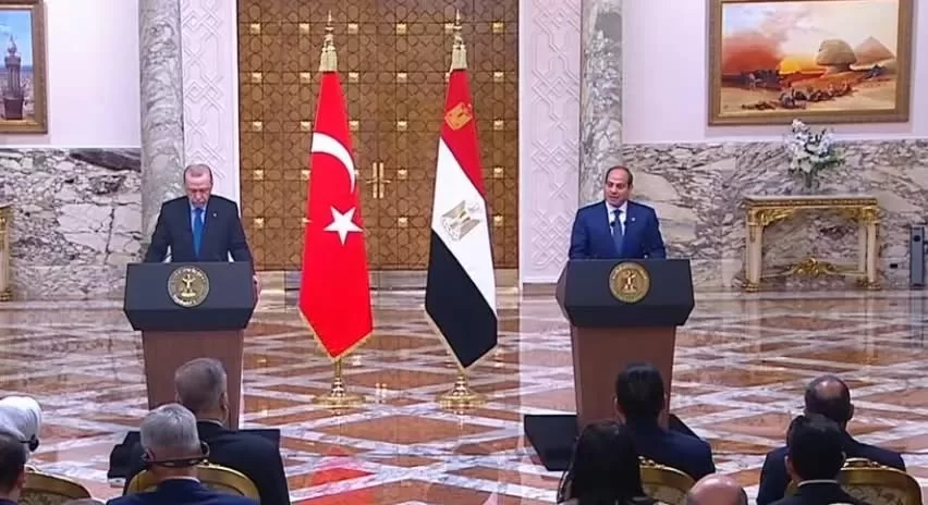 Permettez-moi tout d’abord de souhaiter la bienvenue à mon frère, Son Excellence le Président Recep Tayyip Erdoğan, en Égypte, ainsi qu’à la délégation qui l’accompagne, et d’exprimer ma grande satisfaction à l’occasion de cette visite, qui nous a offert une occasion précieuse de poursuivre nos consultations approfondies, caractérisées par un haut degré de compréhension, sur diverses questions bilatérales, régionales et internationales d’intérêt commun. Cette visite importante intervient après la célébration, l’an dernier, du centenaire des relations diplomatiques entre l’Égypte et la Turquie, deux pays liés par une longue histoire et des liens fraternels solides.