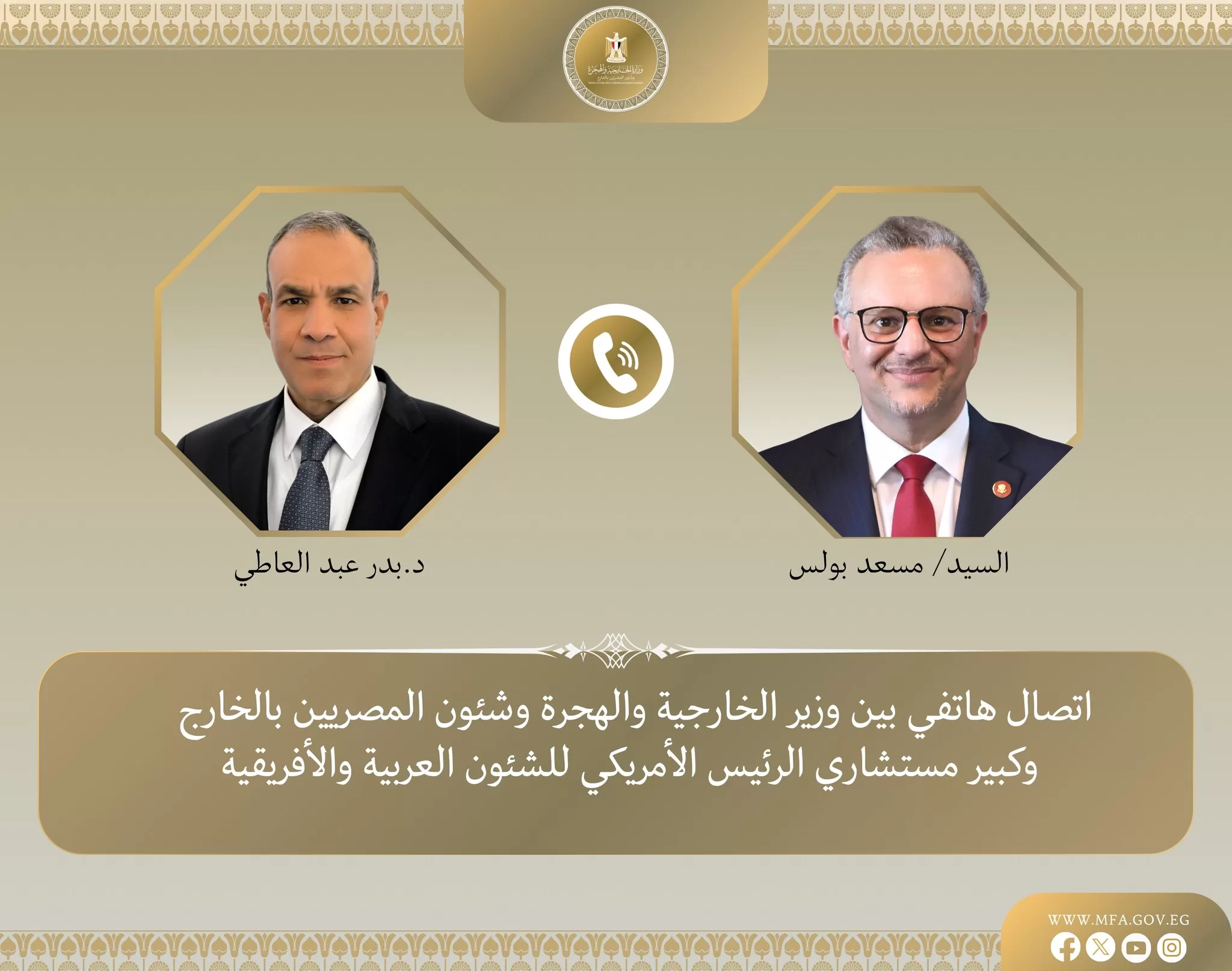 Un entretien téléphonique a eu lieu, aujourd’hui samedi, entre le ministre des Affaires étrangères, Dr Badr Abdel Aati, et M. Massad Boulos, principal conseiller du président américain pour les affaires arabes et africaines. La conversation a porté sur l’évolution de la situation au Soudan. Abdel Aati a réitéré l’importance d’un cessez-le-feu et de la création de conditions propices au lancement d’un processus politique inclusif garantissant l’unité, la souveraineté et la stabilité du Soudan. Il a rappelé les résultats de sa récente visite à Khartoum le 11 novembre. Le Dr Abdel Aati a également condamné les atrocités et violations graves commises à El-Fasher, appelant à une mobilisation régionale et internationale afin de soutenir le peuple soudanais et ses institutions nationales. Il a souligné la nécessité de mettre pleinement en œuvre la déclaration du Quatuor sur le Soudan, notamment l’établissement d’une trêve humanitaire globale en vue d’un processus politique durable préservant l’unité de l’État soudanais et de ses institutions.