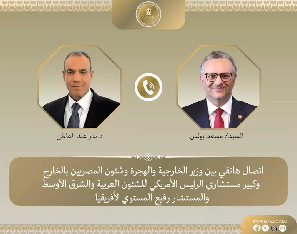 Un appel téléphonique a eu lieu le 27 octobre entre le ministre des Affaires étrangères, Dr Badr Abdel-Aati, et le principal conseiller du président américain pour les affaires arabes et moyen-orientales, M. Massad Boulos, ainsi que conseiller principal pour les affaires africaines. L’entretien a porté sur l’évolution de la situation au Soudan et en Libye.