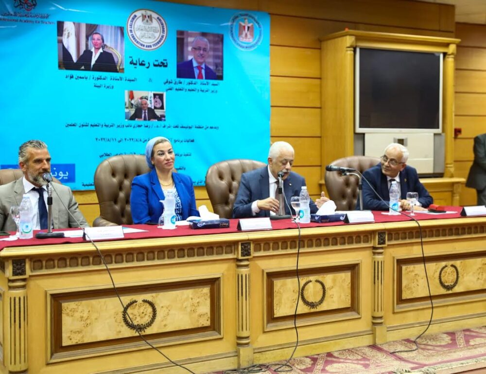 Le ministre de l’Education et de l’Enseignement technique, Dr Tarek Chawki, et la ministre de l’Environnement, Dr Yasmine Fouad, ont lancé le programme le plus important de formation et de sensibilisation aux concepts de changement climatique”, qui se tient du 8 au 11 août courant.