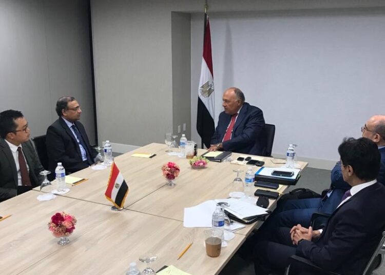 Le ministre des Affaires étrangères, Sameh Choucri a rencontré, mercredi, à New York le représentant permanent de l’Inde auprès des Nations unies pour expliquer la position de l’Egypte vis à vis du Grand barrage de la renaissance (GERD) avant la session du Conseil de sécurité prévue demain jeudi, rapporte la MENA.