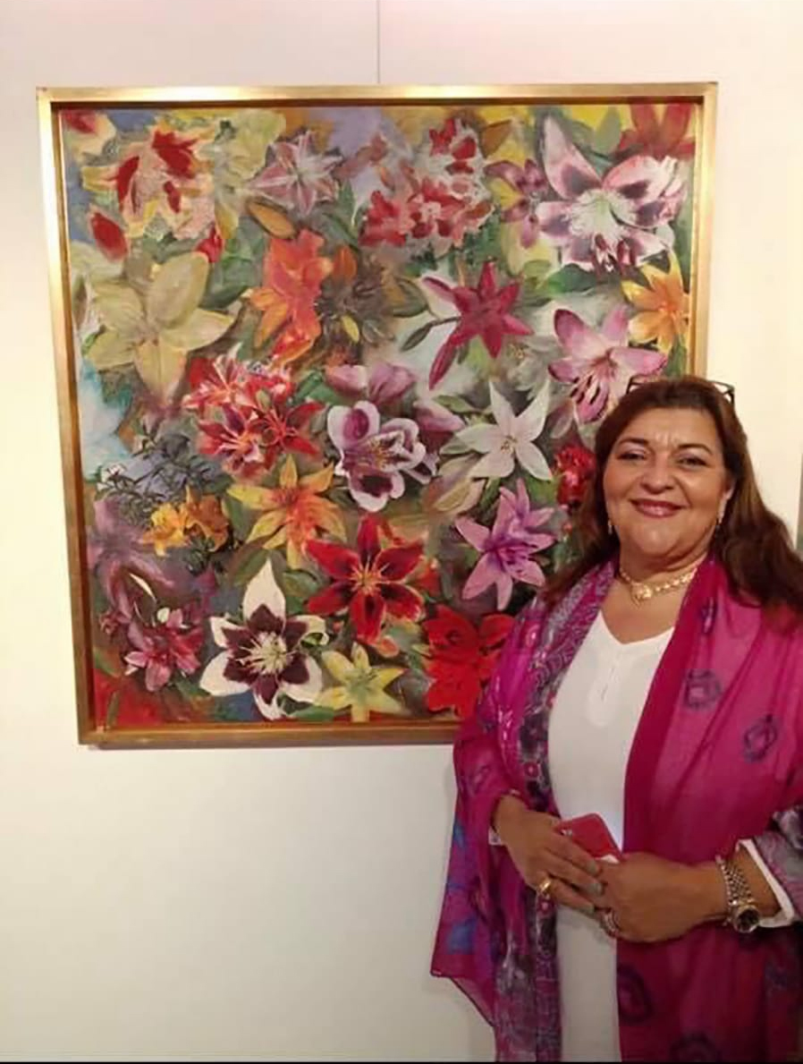 C’est ainsi qu’elle s’est libérée des contraintes artistiques les plus strictes avec une liberté hors pair. Sa vision artistique est très spontanée. Ses tableaux ressemblent à un énorme jardin qui reprend son opinion.