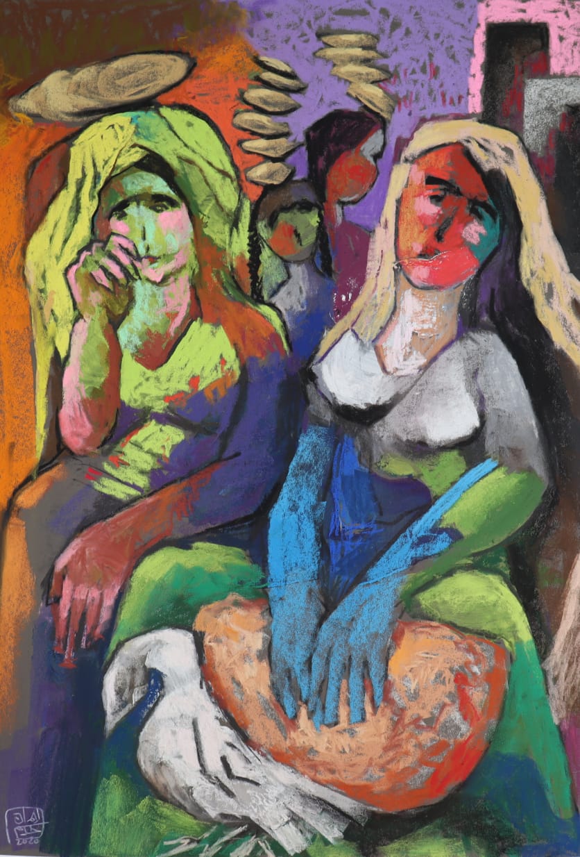 Comment trouver leur chemin dans la vie ? Comment se sont-elles rebellées ? et comment sont-elles devenues dominantes dans certaines situations ? » L’artiste voit en la femme, malgré tout débordement de sa beauté mêlée d’une touche de tristesse, un être dominé par l’ambition, la patience, le dévouement et la sagesse ! En ce qui concerne l’œuvre, elle tient à y présenter son impression de la situation qui l’affecte, au moment où elle voit un nouvel aspect de notre société mêlé à la profondeur artistique.