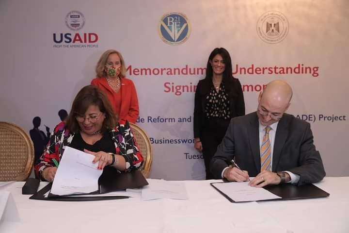 La ministre de la Coopération internationale a assisté, mardi, à la signature d’un protocole d’accord entre le Projet de développement du commerce et des exportations en Égypte, f inancé par l’Agence américaine pour le développement international et l’Association égyptienne des femmes d’affaires, pour coopérer à l’amélioration d’un climat propice aux activités de commerce et d’investissement des femmes exportatrices, avec un accent particulier sur les petites et moyennes entreprises.