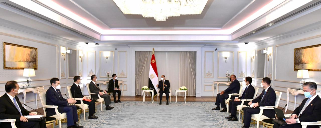 Le président Abdel Fattah Al-Sissi a reçu hier dimanche M. Wang Yi, ministre des Affaires étrangères de la République populaire de Chine, en présence notamment de son homologue égyptien M. Sameh Choucri, et de l’ambassadeur de Chine au Caire. Le porte-parole de la Présidence de la République a déclaré que le président avait souhaité la bienvenue au responsable chinois en Egypte, lui demandant de transmettre ses salutations au président de la République populaire de Chine, Xi Jinping. Et de souligner le souci de l’Egypte de hausser le niveau de partenariat stratégique global unissant les deux pays, d’autant plus que cette année marque 65 ans des relations diplomatiques égypto-chinoises, avec une longue évolution de la coopération entre les deux pays dans divers domaines. Message de Jinping à Al-Sissi Un partenariat qui a permis à l’Egypte de bénéficier de l’expérience chinoise, qui est une réussite que le monde cherche à étudier afin de faire progresser le développement global de la prospérité et du bien-être des peuples. De son côté; le ministre chinois des Affaires étrangères a transmis au président Al-Sissi un message verbal du président Xi Jinping, qui affirme notamment la volonté de la Chine de continuer à développer ses relations stratégiques avec l’Égypte, notant le respect et l’appréciation de son pays pour le président et l’Égypte à la lumière de son rôle central en tant que partenaire fondamental et pilier de la stabilité dans la région du MoyenOrient. Le chef de la diplomatie chinoise a affiché le plein soutien de la Chine à l’Egypte dans ses efforts de développement global, la lutte contre le terrorisme et la réalisation de la sécurité et de la stabilité dans la région. Le ministre chinois a précisé l’acceptation de l’adhésion de l’Égypte en tant que partenaire de dialogue à l’Organisation de coopération de Shanghai, qui s’occupe de la coordination dans les domaines de la lutte contre le terrorisme et l’extrémisme, l’énergie et la science.