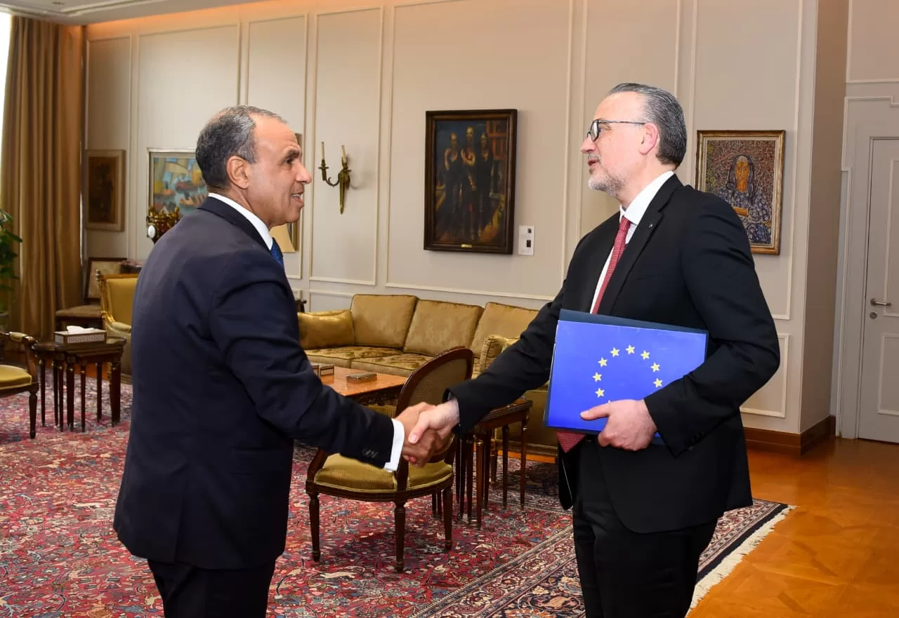 Dr Badr Abdelatty, ministre des Affaires étrangères, de l’Immigration et des Égyptiens à l’étranger, a reçu ce mercredi 25 mars une délégation de haut niveau de la Banque européenne d’investissement (BEI). La délégation était conduite par M. Ulrich Brunnhuber, chef des opérations pour le Moyen-Orient et l’Afrique du Nord, accompagné de Mme Inmaculada Martínez, responsable de l’unité Machrek.