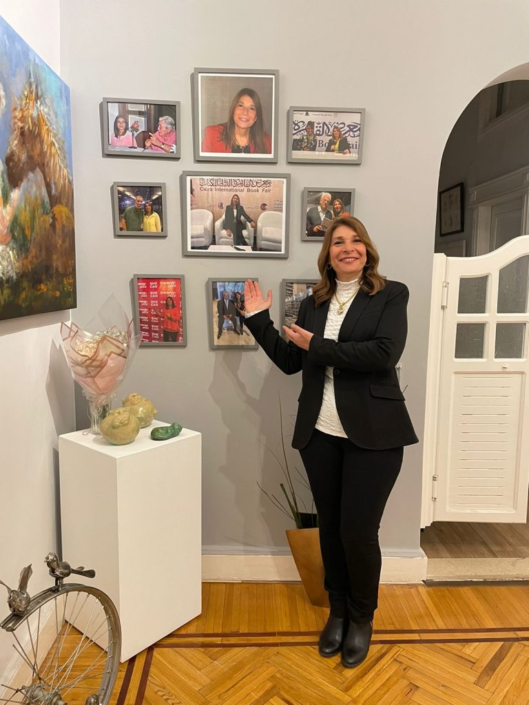 La musique remplit l’espace et le mouvement des amateurs d’art à l’intérieur de la salle ressemble à un concert de musique, de danse, devant lequel est assis la créatrice Dr Rasha Samir, romancière bien connue, dentiste, membre de l’Union des écrivains égyptiens, chroniqueuse au journal Al-Fajr et directrice du Salon culturel Ihsan Abdel Qouddous. Les invités sont une élite des intellectuels les plus brillants et les plus importants d’Egypte: Dr Hossam Baddrawy, Dr Hisham Zaazou, Ashraf Reda, aux côtés du grand artiste Wagih Yassa.