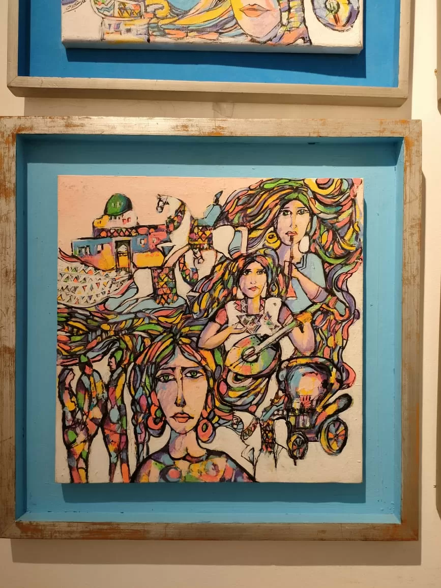 J’ai également rencontré la belle artiste Iman Al-Hakim, l’une des artistes les plus importantes d’Egypte, et ses femmes en quête du bonheur, des droits et des rêves perdus. Ses femmes qui ont honte de parler mais dont les yeux révèlent tous les secrets.  Iman est ravie de participer à cette exposition.