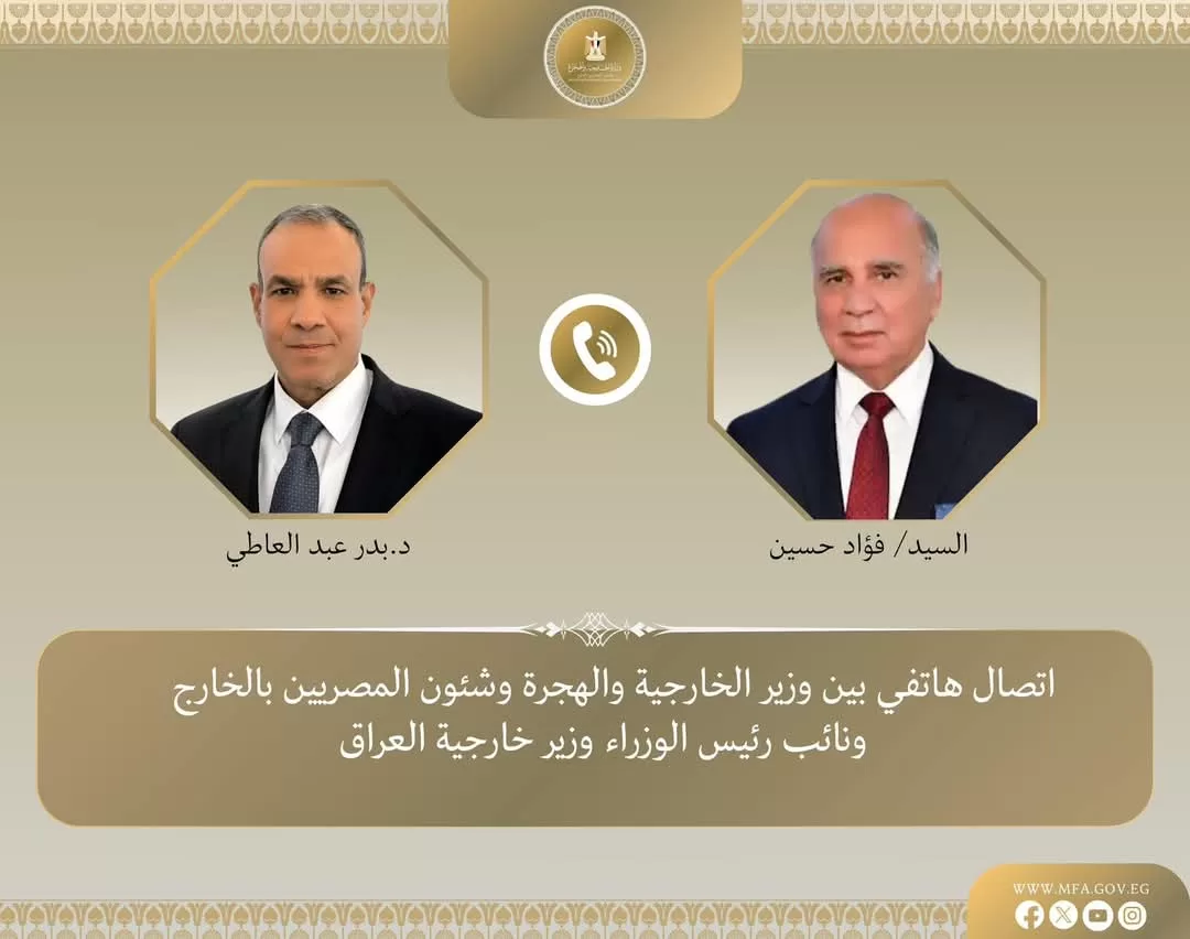Le ministre des Affaires étrangères, Badr Abdel-Aati, a reçu un appel téléphonique de la part du vice-premier ministre et ministre irakien des Affaires étrangères, Fouad Hussein.