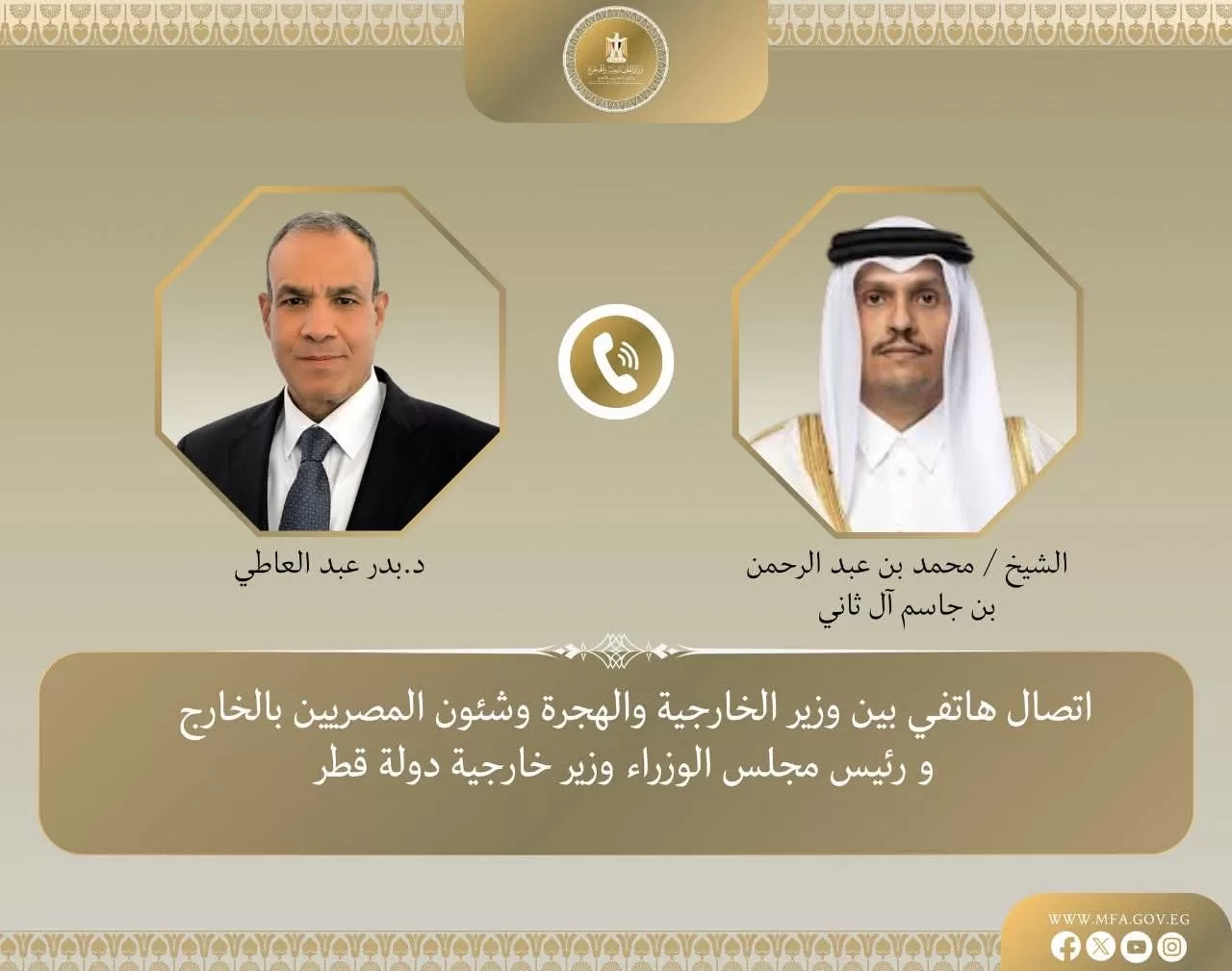 Un entretien téléphonique a eu lieu entre le ministre des Affaires étrangères, Badr Abdel-Aati et le cheikh Mohammed bin Abdulrahman Al Thani, Premier ministre et ministre des Affaires étrangères de l’État frère du Qatar.