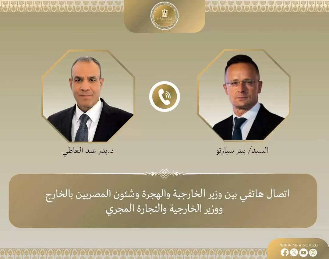 Le ministre des Affaires étrangères et de l’Immigration, Dr Badr Abdel-Aati, a eu un entretien téléphonique avec son homologue hongrois, Péter Szijjártó, ministre des Affaires étrangères et du Commerce, le samedi 15 mars. Les discussions ont porté sur les relations bilatérales entre l’Égypte et la Hongrie ainsi que sur la mise en œuvre de la plan arabe de relèvement précoce et de reconstruction de Gaza.