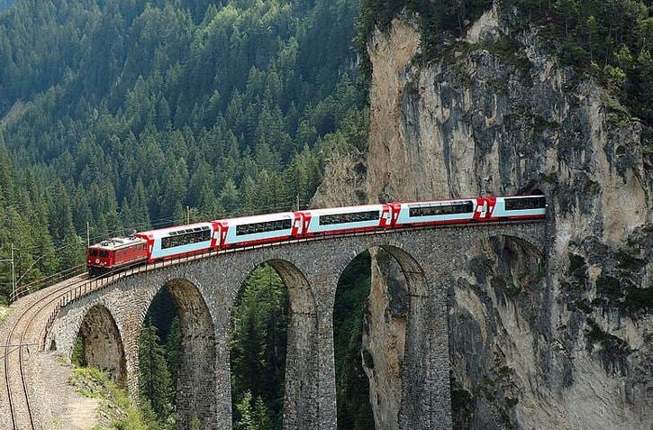 Le train suisse “Glacier Express” est connu comme étant le train express le plus lent au monde, mettant plus de 8 heures pour parcourir une distance de 290 km, à travers les Alpes suisses. Ce train qui relie les stations de montagne de Zermatt et Saint-Moritz ne ressemble pas aux trains à grande vitesse qui circulent en Europe. Il se déplace à une vitesse moyenne de 36 km/ h, ce qui lui vaut cette réputation d’être “le train rapide le plus lent au monde”.