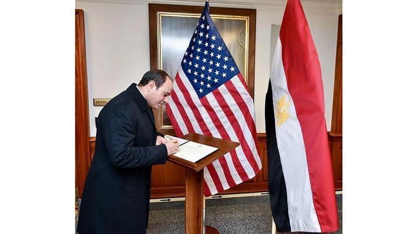 En marge de sa visite aux États-Unis, le Président Abdel Fattah Al-Sissi a écrit un mot dans le registre d’honneur du Pentagone.