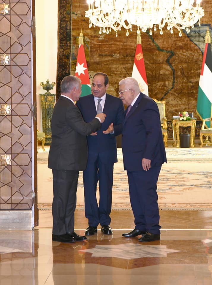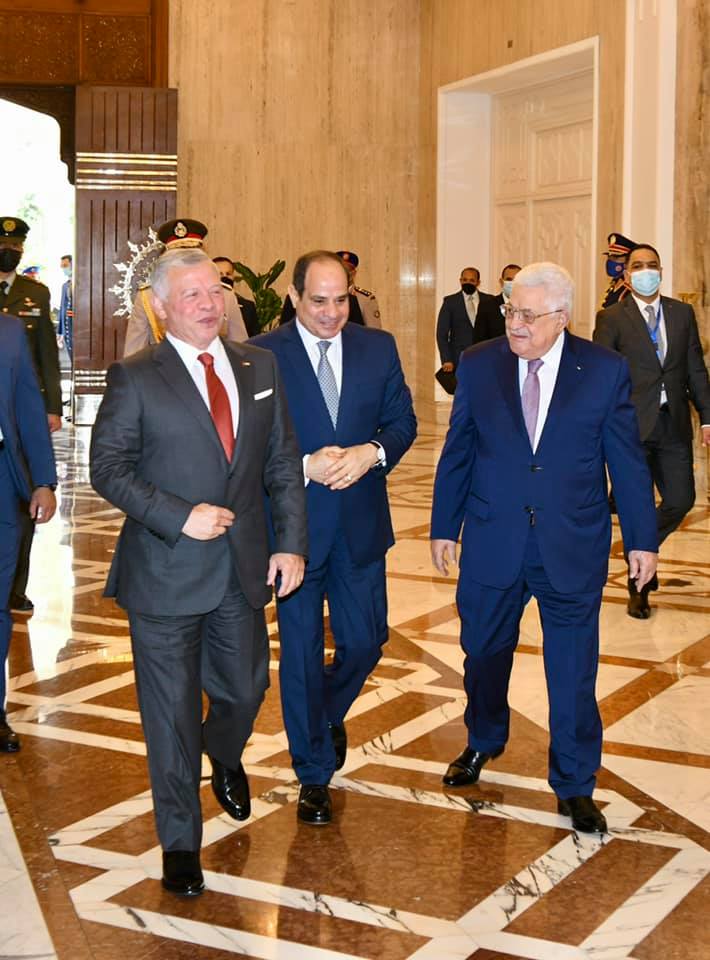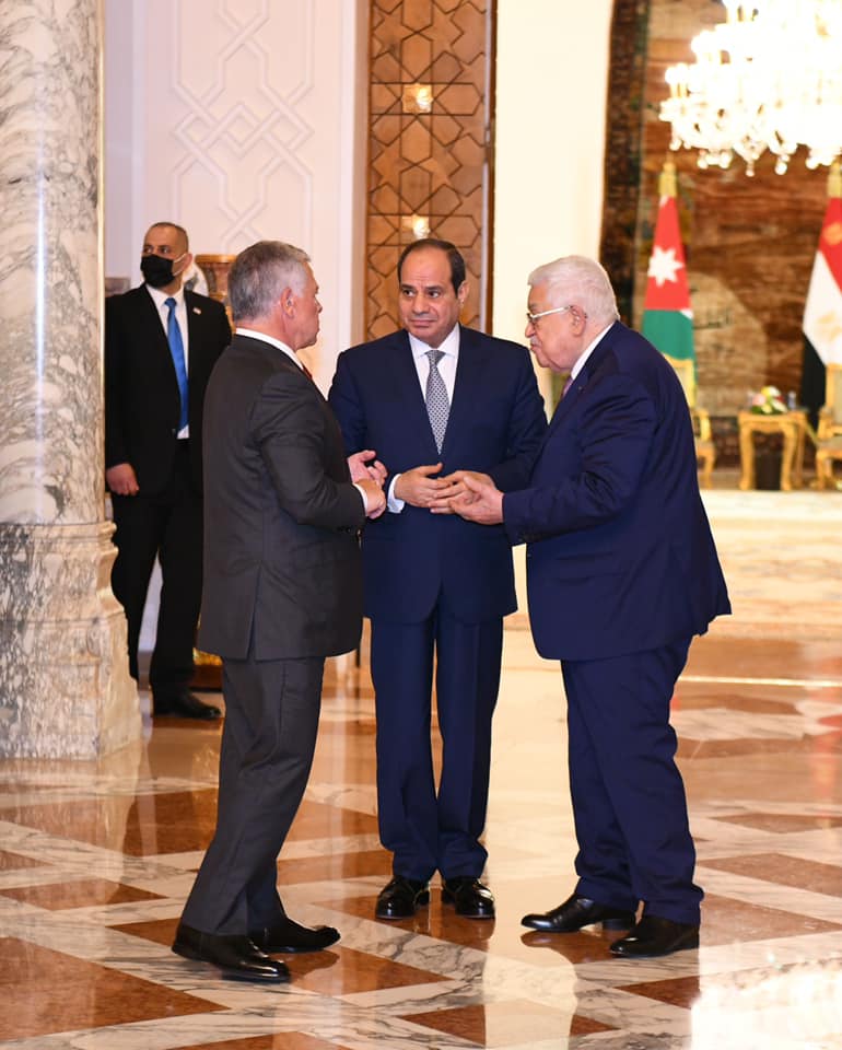 La déclaration finale du sommet tripartite ayant eu lieu hier jeudi au palais d’Al-Ittihadiya entre le président Abdel Fattah Al-Sissi, le président palestinien Mahmoud Abbas et le roi Abdallah II de Jordanie, a affirmé la centralité de la cause palestinienne, étant la première question arabe.Selon la MENA, la déclaration a fait état des positions de soutien de l’Egypte et de la Jordanie au peuple palestinien frère et ses droits justes et légitimes avec en tête l’établissement de son Etat indépendant et souverain dans les frontières du 4 juin 1967 avec Jérusalem-Est pour capitale, conformément au droit international, aux résolutions pertinentes de la légitimité internationale et à l’initiative de paix arabe.