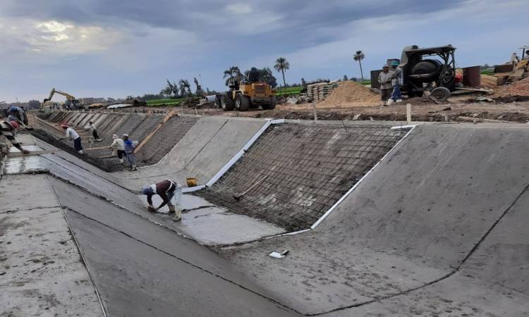 L’Etat vise à atteindre plus de 20 000 km dans ce projet. L’ancien plan, avant les directives du Président Al-Sissi, visait à doubler 2 000 kilomètres par an, ce qui signifie l’achèvement du projet d’ici 10 ans, soit fin 2030. La première phase de ce projet atteint 7 000 km, et des travaux sont actuellement en cours sur plus de 3.500 km, à un rythme de 50% . Les travaux se déroulent désormais dans des canaux dont le fond est inférieur à 6 mètres dans 14 gouvernorats parmi lesquels Gharbiya, Ménoufiya, Kafr El-Cheikh, Sohag, Béni Soueif, Ismaïliya. Le projet national de revêtement des canaux vise également à réduire les dépenses croissantes consacrées à l’entretien des canaux et au désherbage, entre autres, ce qui permettra d’économiser entre 20 et 25% de ces dépenses en plus d’améliorer le débit d’eau dans ces canaux, notant qu’un plan de sortie a été élaboré pour le projet de revêtement du canal. Depuis début mars 2020, les canaux ont été revêtus de moellons, puis nivelés à la surface avec du béton de 15 ou 20 cm d’épaisseur sur les pierres, de sorte que le canal devienne lisse pour retenir l’eau à l’intérieur. Dans le gouvernorat d’Ismaïliya, 160 km de la cible totale de 700 à 800 km, ont été excavés, dans le cadre du projet national de revêtement des canaux.