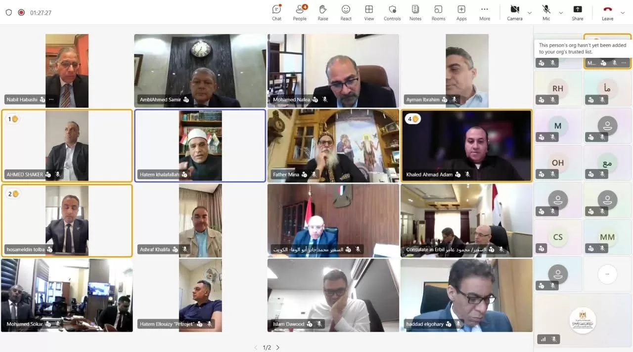 La réunion a également permis un dialogue interactif avec les participants, au cours duquel le vice-ministre a répondu à leurs questions et pris en compte leurs suggestions, réaffirmant l’engagement du ministère à fournir assistance et protection aux citoyens égyptiens à l’étranger.