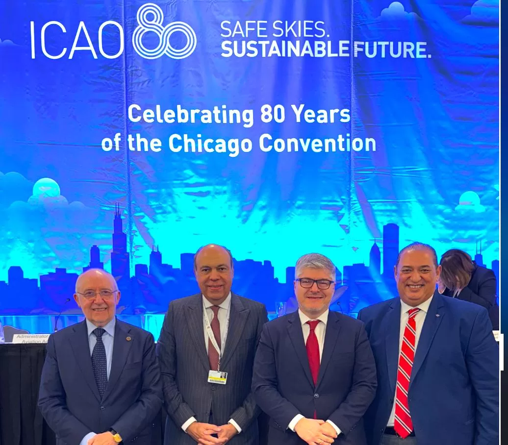 Dans le cadre des relations solides et historiques entre le secteur de l’aviation civile égyptienne et l’Organisation de l’aviation civile internationale (OACI), Dr Sameh Al-Hefni, ministre de l’Aviation civile, a pris part à la célébration du 80e anniversaire de l’OACI. L’événement, organisé à Chicago, commémorait la signature de la Convention de Chicago en 1944 et la création de l’organisation. Parmi les participants figuraient M. Salvatore Sciacchitano, président du Conseil de l’OACI, M. Juan Carlos Salazar, secrétaire général de l’organisation, ainsi qu’un grand nombre de ministres des Transports et de l’Aviation et des représentants des États membres.