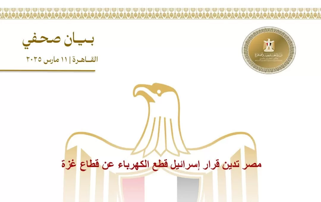 Dans un communiqué publié par le ministère des Affaires étrangères, l’Égypte a condamné le fait qu’Israël a coupé l’électricité dans la bande de Gaza. Ce qui constitue une nouvelle violation du Droit international et humanitaire ainsi que de la quatrième convention de Genève.