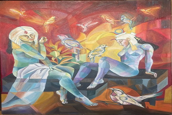En plus de la formulation et du traitement des couleurs dans sa diversité, sa richesse et son harmonie pour exprimer la situation ou la scène de chaque œuvre, une conception décorative intrigue à partir d’une vision particulière de l’artiste. Ici, la couleur joue un rôle important pour montrer la beauté féminine d’une femme et l’exprimer sous sa meilleure forme. Et ce, grâce à des ajouts importants aux éléments de l’héritage artistique égyptien antique et à l’alphabet hiéroglyphique dans les conceptions artistiques modernes qui sont conformes à l’esprit de l’époque, avec une expression symbolique abstraite qui inclut le rythme et l’harmonie des couleurs avec une nouvelle vision utilisant des combinaisons de couleurs d’acryliques.
