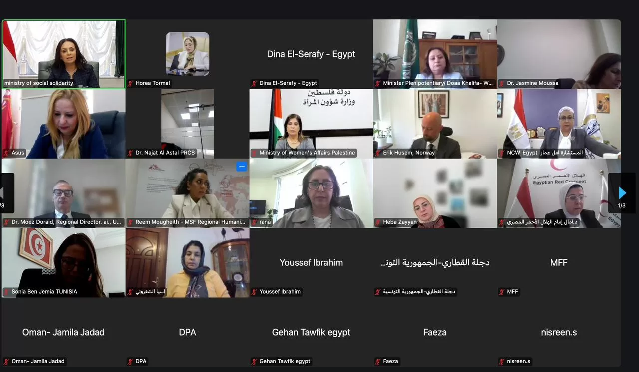 La ministre de la Solidarité sociale, Dr Maya Morsi, a participé par visioconférence à une séance de dialogue régionale organisée par la Ligue arabe sous le thème :