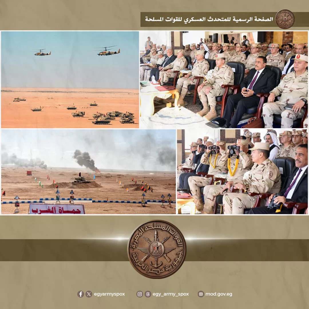 Le ministre de la Défense et de la Production militaire, le général de corps d’armée Abdel Maguid Saqr, a assisté à la phase principale d’un exercice tactique réalisé avec troupes et munitions réelles par l’une des unités de la Zone militaire Ouest. L’événement s’est déroulé en présence du général Ahmed Khalifa, chef d’Etat-major des Forces armées, de plusieurs gouverneurs, de hauts responsables militaires, d’étudiants des académies militaires, de représentants des médias, ainsi que de personnalités publiques et de notables de Matrouh, Siwa et de l’Université de Matrouh.