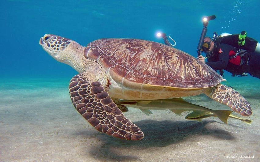 Les herbiers alimentent des espèces menacées, les dugongs et les tortues vertes, Chelonia mydas, qui nichent sur la côte et sur les îles.