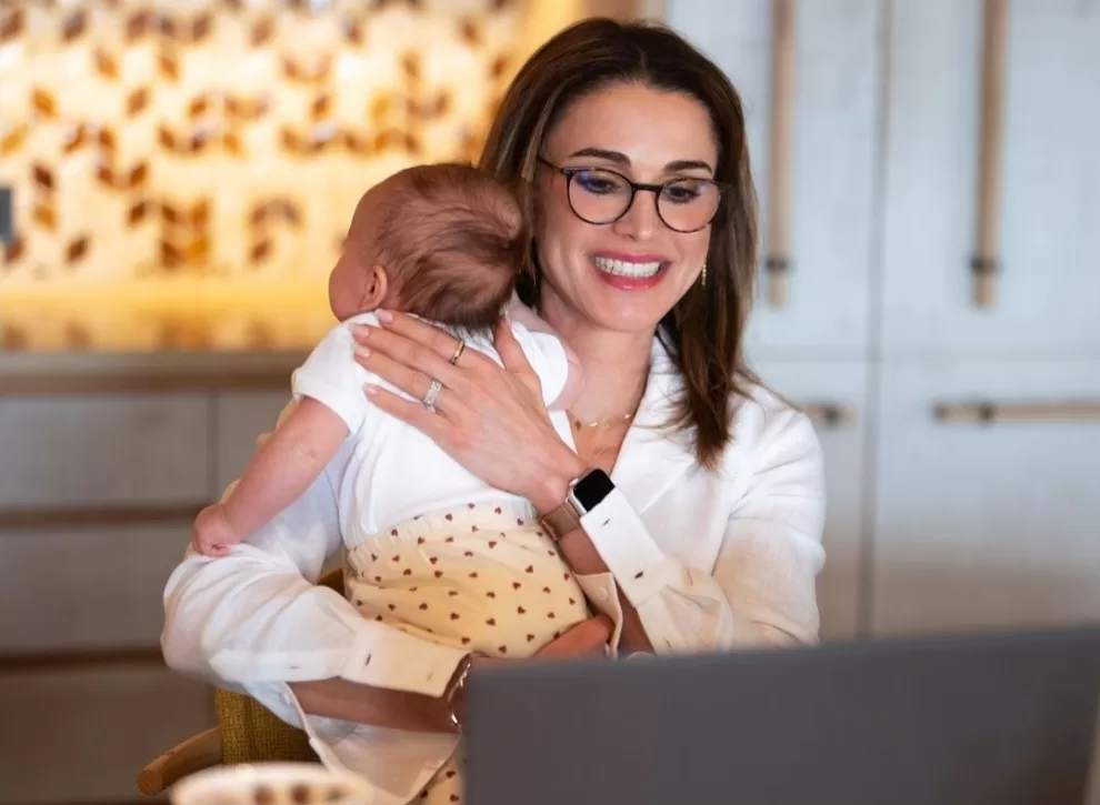 La reine Rania en particulier, se montre très active sur les réseaux sociaux, partageant régulièrement des images de son quotidien de jeune grand-mère. À 54 ans, la reine n’a visiblement pas eu de difficulté à endosser le rôle de mamie-gâteau, se montrant en totale admiration face à ce petit bébé qui porte le même prénom que sa fille aînée, selon Paris Match.Cette semaine, la reine a franchi un nouveau cap en faisant participer sa petite-fille à une réunion en visioconférence à ses côtés. Dans une photo publiée le 8 novembre sur Instagram, Rania apparaît face à son ordinateur, la petite Iman dans les bras, écrivant en légende : « première réunion zoom pour le précieux bébé Iman, plus tôt cette semaine ».Dans les bras de sa grand-mère, Iman apparaît toute potelée, vêtue d’un body blanc à manches courtes et d’un pantalon imprimé de petits cœurs rouges. Si on n’aperçoit pas le visage la petite fille, elle semble cependant avoir déjà bien grandi et réussit à tenir sa tête droite, même si la main protectrice de Rania n’est jamais bien loin.À trois mois, la fille d’Hussein et Rajwa de Jordanie peut en tout cas se vanter d’avoir donc déjà participé à sa première réunion, le devoir royal n’attendant visiblement pas le nombre des années. La place de la petite fille reste cependant à définir au sein de la famille régnante de Jordanie, Iman étant déjà officiellement écartée du trône malgré son statut d’aînée.