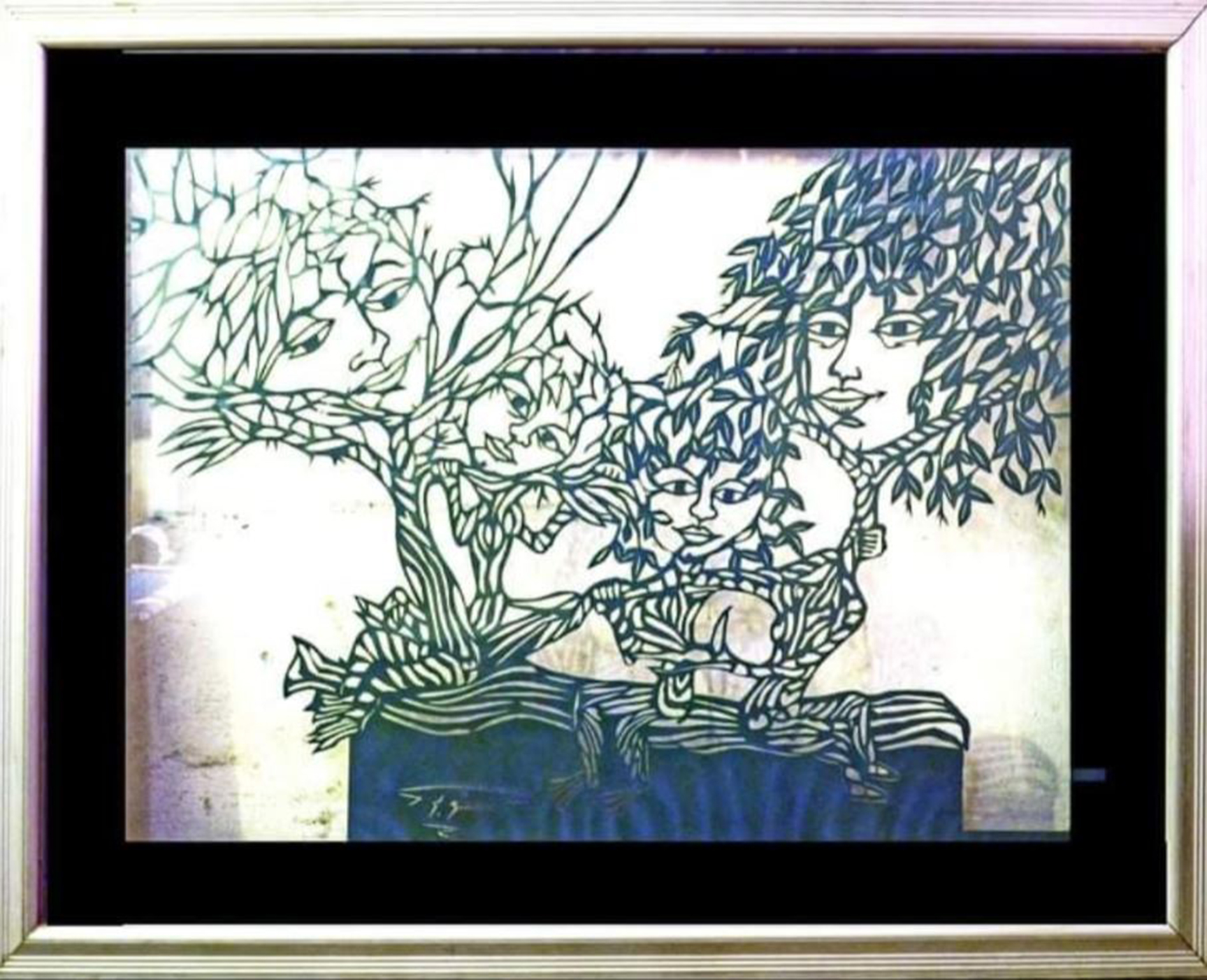 Maintenant, il fait des formations avec des ciseaux pour la nature. En contemplant sa beauté, cela ressemble à une icône de la créativité. Le papier est l’une de ses expériences les plus importantes. Il ne fait pas de collage (couper-coller), mais il prend papiers de couleur des journaux, des magazines et des affiches de propagande) pour faire des rêves et des contes de la porte de la mémoire et des contes de sa mère, son seul amour et l’une des raisons les plus importantes de son bonheur dans la vie, alors quand vous voyez des peintures de Nouby, vous sentirez une abondance de sentiments d’amour et de tendresse. Chaque action est une invitation à l’amour, un messager de paix et une partie importante de l’énergie créatrice qui est transmise de l’œil et du cœur de Nouby.