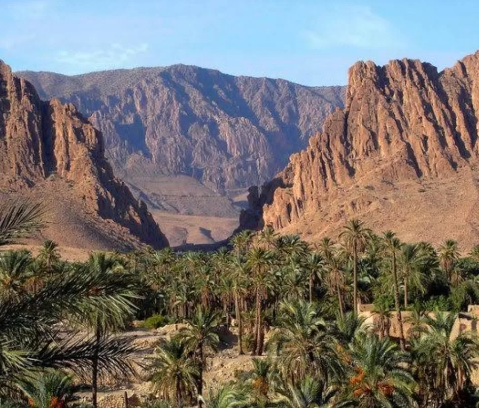 Oasis Ain Khadra, quand les falaises de grès jaunâtres s’enchaînent avec les palmiers