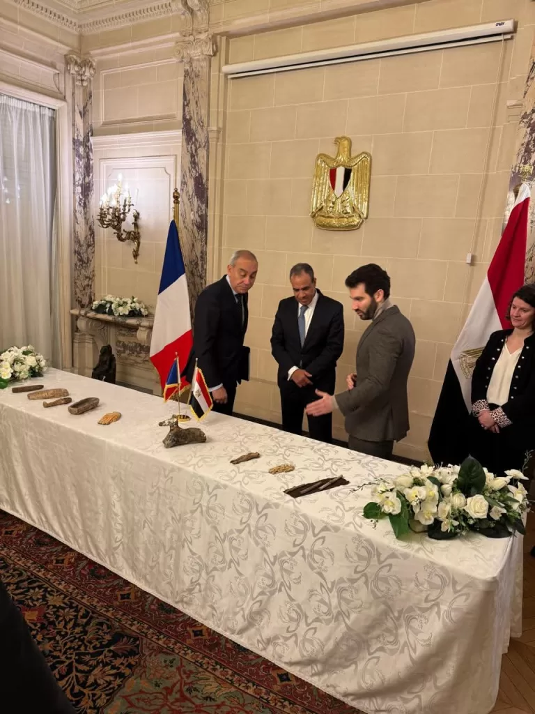 Le ministre des Affaires étrangères et de l’Immigration, Badr Abdel Aati, a participé à Paris, aux procédures de récupération de pièces antiques égyptiennes, sorties illégalement du pays, selon la MENA.L’ambassade d’Egypte à Paris a pu récupérer ces pièces antiques en coordination avec le ministère français de l’Intérieur dont les efforts ont été valorisés par M. Abdel Aati qui a souligné que ces pièces constituent un patrimoine historique et culturel, jugeant nécessaire de traquer les réseaux de trafic.Abdel Aati a exprimé l’appréciation de l’Egypte à la partie française pour sa coopération dans la récupération des objets, saluant les efforts des autorités françaises dans la récupération des objets égyptiens de contrebande en tant qu’héritage historique et culturel, soulignant l’importance d’intensifier les efforts pour poursuivre les réseaux de contrebande d’antiquités égyptiennes. Le ministre des Affaires étrangères a ordonné d’achever rapidement toutes les procédures nécessaires pour l’expédition des objets en coopération avec le ministère du Tourisme et des Antiquités et leur retour au pays.Le ministre Abdel Aati a également salué les efforts inlassables déployés par les missions égyptiennes à l’étranger pour récupérer les antiquités égyptiennes de contrebande, ainsi que la coordination entre les ambassades égyptiennes et les institutions et agences nationales, notamment le ministère du Tourisme et des Antiquités et le bureau du procureur général égyptien, pour préserver la richesse et le patrimoine du pays.