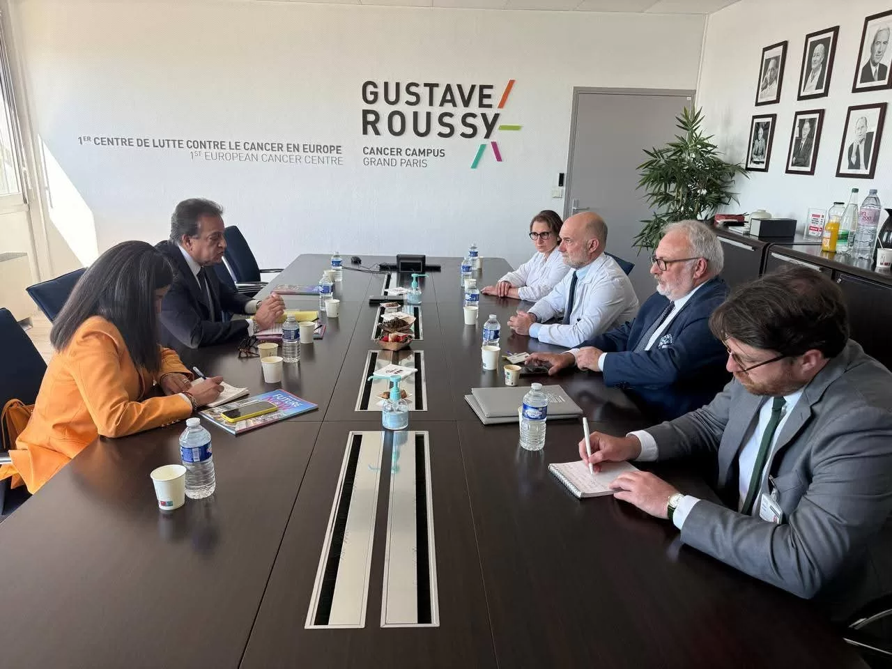 Dr Khaled Abdel Ghaffar, ministre de la Santé et de la Population, s’est rendu au prestigieux Institut Gustave Roussy, où il a rencontré le directeur général de l’Institut, en marge de sa participation au sommet « Une seule santé 2026 » à Lyon.