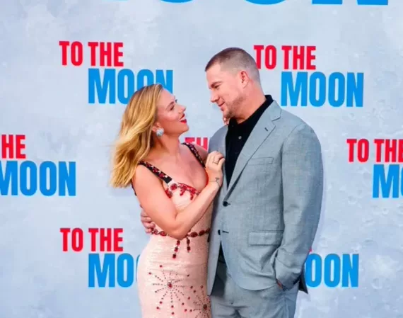Scarlett Johansson a fait sensation lors de l’avant-première de « To The Moon » à Berlin avec son acolyte Channing Tatum. L’actrice américaine portait une ravissante robe à sequins rose pale, brodée de nombreux bijoux rouges.