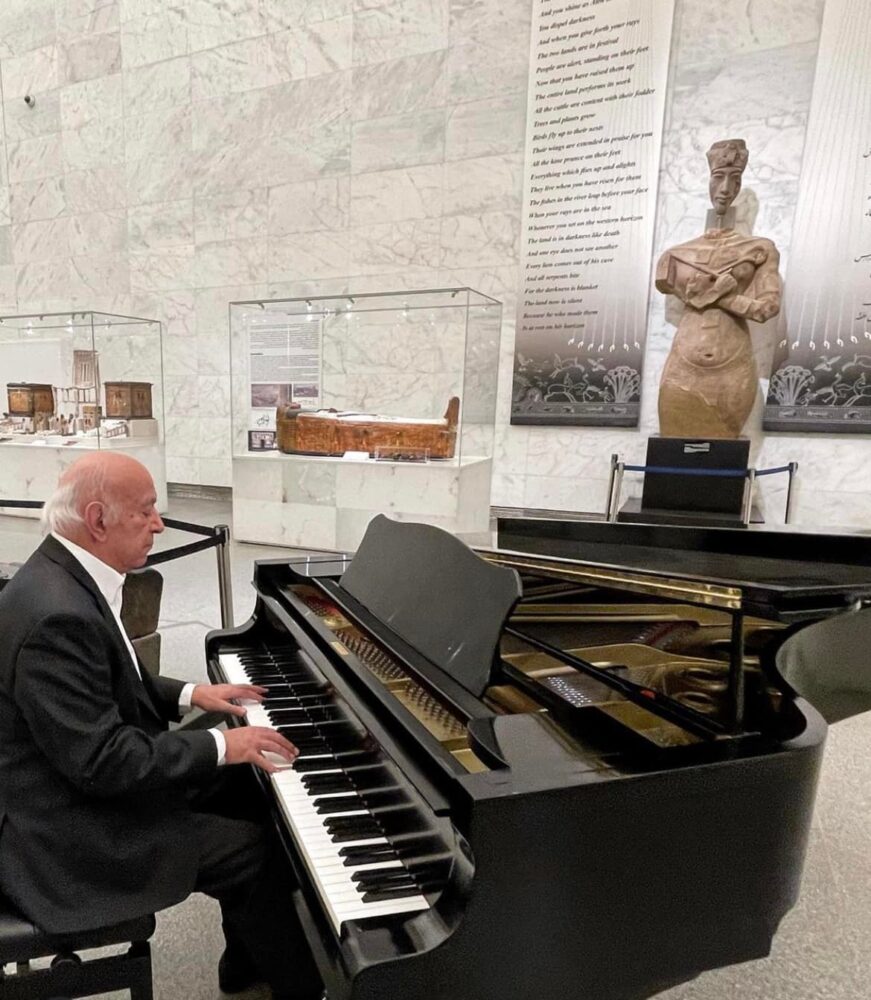 Quand il s’agit d’un lieu imposant et d’un grand artiste musicien, on parlera de la star Omar Khayrat, qui a animé un concert avec sa troupe au sein du Musée de la Civilisation égyptienne, en présence d’un ancien roi égyptien, Akhnatoun et au milieu des trésors de l’ancienne Egypte. Rien de plus propice et enchantant pour célébrer la Journée mondiale de la Musique. (Page Facebook : This is Wonderful Egypt. Photo : Eyad Awad Studio)